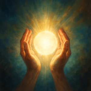 Now hold your hands a few inches apart and visualize a sphere of radiant light forming — white, gold, violet, or whatever color your intuition chooses.